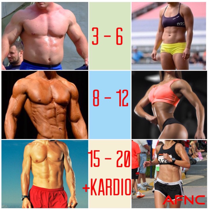 Qëllimi tënd është të ndërtosh muskuj të mëdhenj dhe të performosh ngritje të peshave të rënda (powerlifter)? Kërkon zhvillim të secilit gup muskul duke krijuar masë muskulare të dukshme (bodybuilder)? Apo trupin e një atleti ku mbase muskujt nuk janë shumë të shfaqur por performanca sportive është e lartë? Tabela e mëposhtme jep thjesht rregullin bazë se sa lëvizje performohen për të realizuar tipin e trupit!