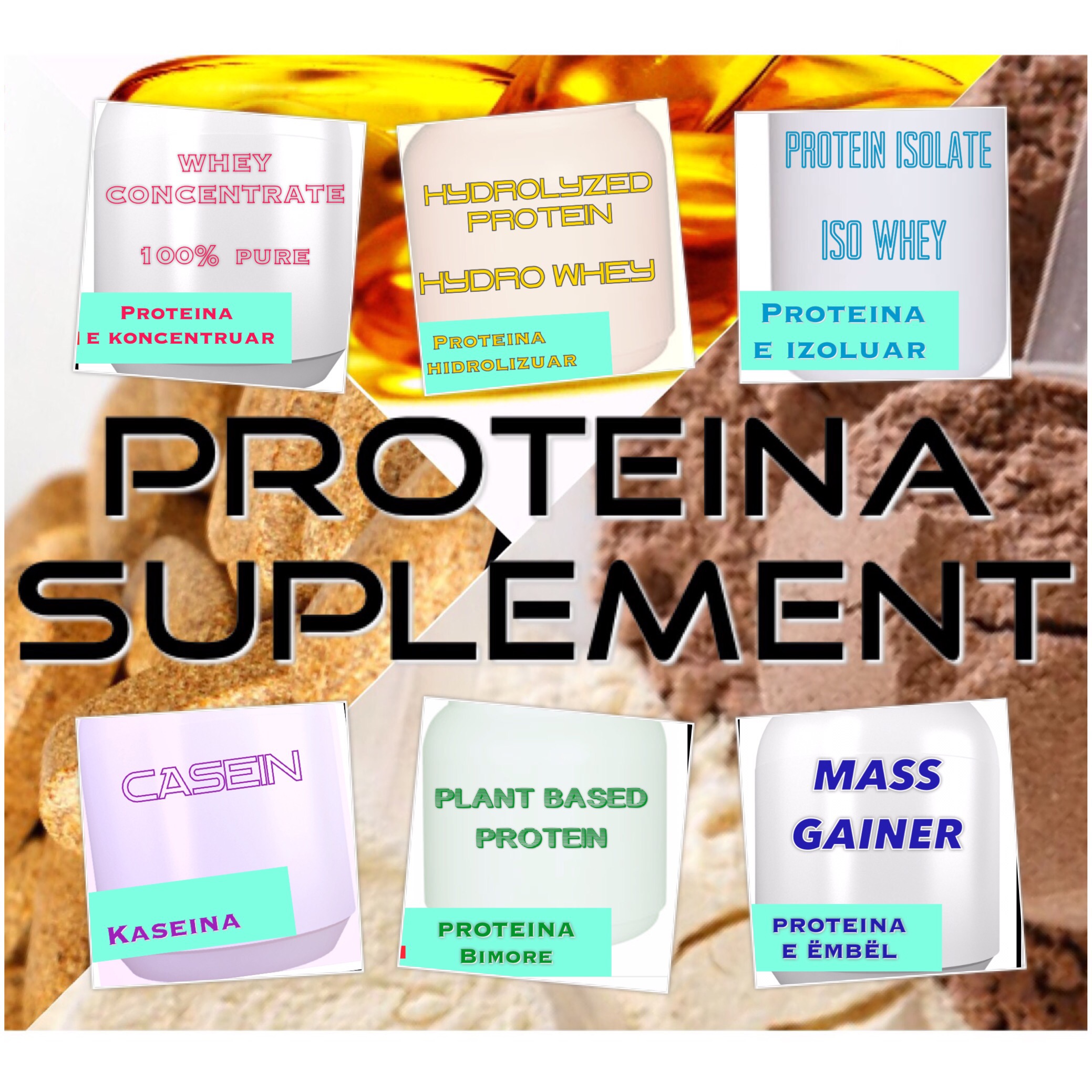 Proteina suplementale në formë pudre është produkti më i njohur dhe më i përdorur nga komuniteti i fitnesit. Nëse hyn në një dyqan suplementesh apo klikon në internet, mes qindra produktesh do të shohësh të reklamuar gjithçka të nevojitet për të realizuar sa më shpejt qëllimin tënd “trup muskuloz dhe të shëndetshëm“! Prodhuesit kanë reklamuar me shkronja kapitale mbi produktet: proteinë 100% e pastër (100% pure whey protein), përfitues mase (mass gainer), përfitim muskujsh (muscular gainer), termat vazhdojnë edhe më agresivë: proteinë për djegie dhjami (fat burning protein), proteinë anabolike (anabolic protein), proteinë për rritje e muskujve të pastër (increase lean muscle mass), proteinë energjike (energy protein), etj, etj! Ky është momenti i konfuzionit dhe këtu na duhet ndihmë se kë të zgjedhim pasi të gjitha ofrojnë atë që kërkojmë!?!
