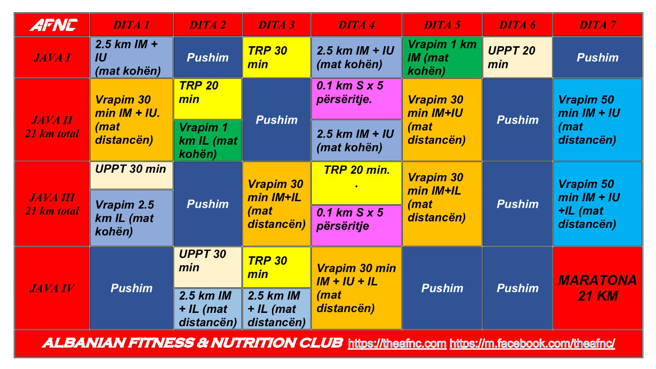 PLAN PREGATITOR INTENSIV 4 JAVOR PËR VRAPUES MARATONE 21 KM.